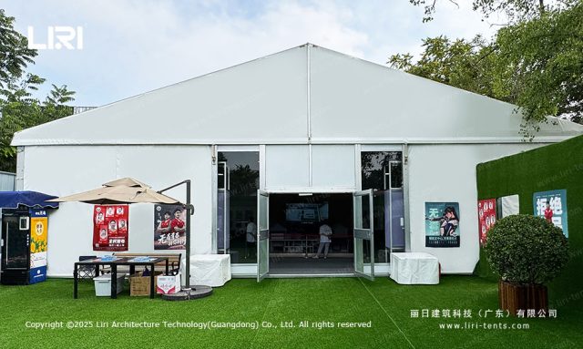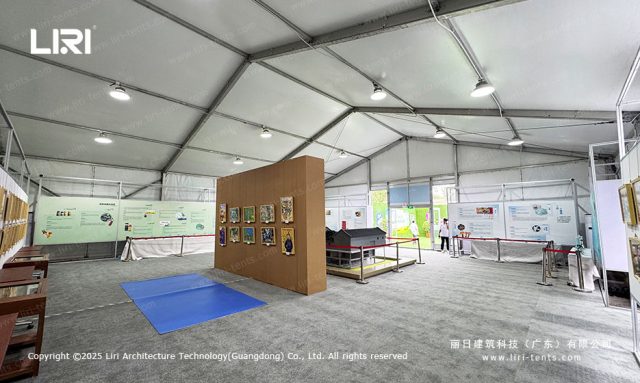 High-Tech Product Roadshows (Tech Roadshow): Leasing a 15m x 20m clear span structure, fitted with dark PVC fabric for a complete blackout environment, along with professional lighting, to create an ideal “black box” hall for VR or projection demonstrations.