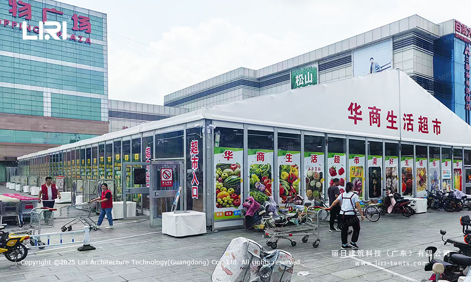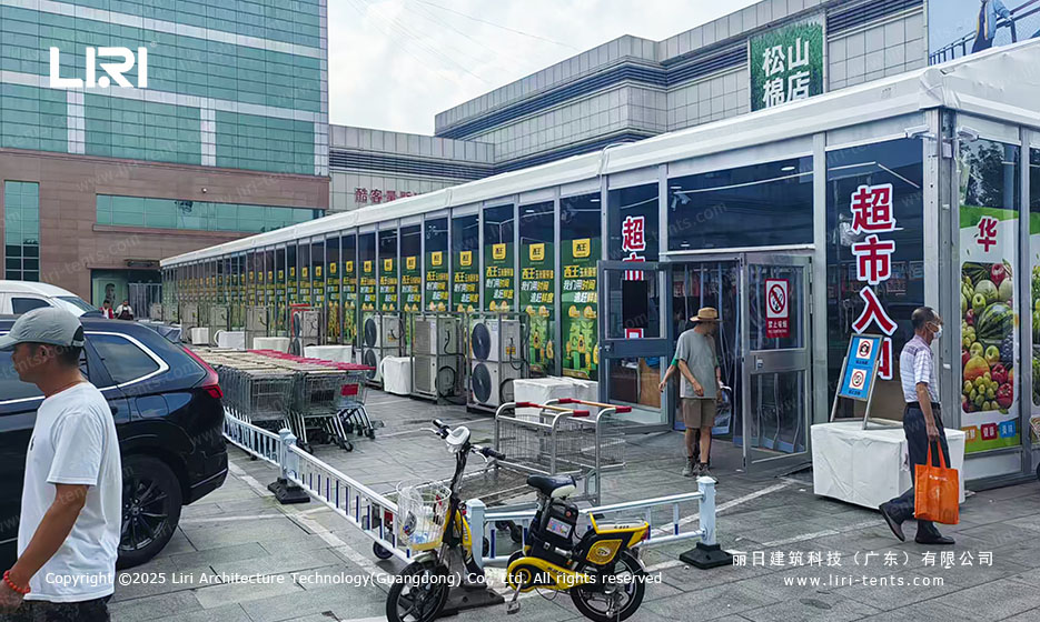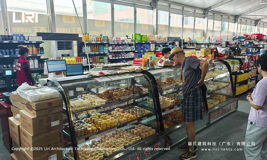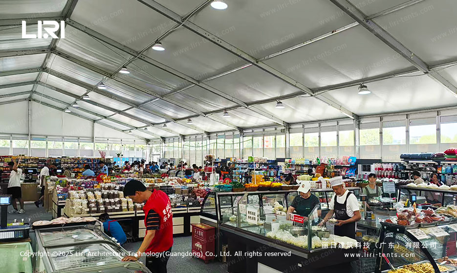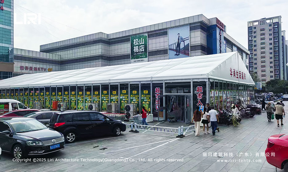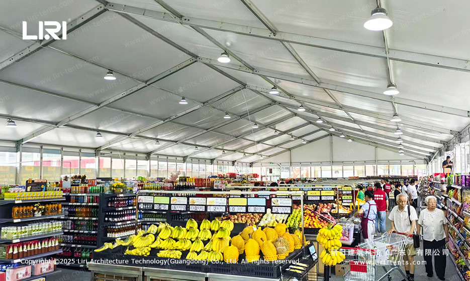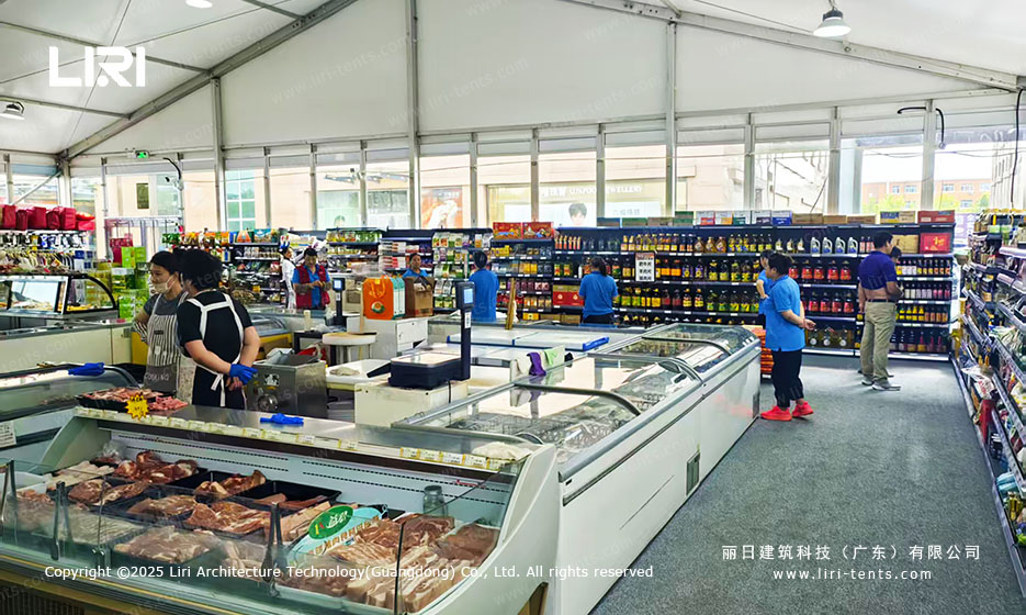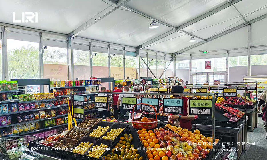 In the rapidly evolving urban commercial landscape, the retail industry’s demand for temporary space is constantly growing. Whether it’s an outdoor temporary supermarket necessitated by residential area upgrades or a seasonal sales point, the Clear Span Tent is fast becoming the best alternative to traditional construction for achieving rapid operation.