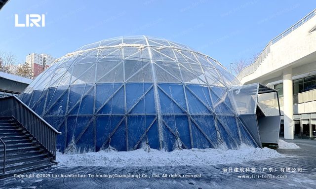 The initial challenge was clear: the client required a 1,500-square-meter footprint capable of hosting high-frequency corporate galas, but the site was prone to high wind loads. Instead of a standard temporary fix, we integrated a reinforced aluminum alloy frame (6061/T6) with a 25m clear-span design. This eliminated the need for internal support columns, providing an unobstructed view and maximum floor-plan flexibility.