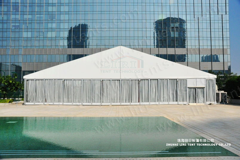 The clear span of the tent is from 10m to 25m, the length could be expandable by 5m, with no limitation.