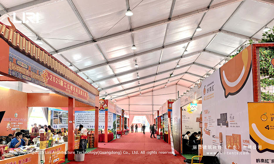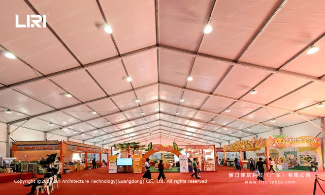 The efficiency of this project stemmed from the inherent geometry of the clear span tent. By eliminating internal support pillars, we maximized the usable floor area, allowing exhibitors to design complex booth layouts without structural interference. For the primary halls, we deployed wide-span structures specifically configured as exhibition tent units, while smaller modular structures were interconnected to serve as transitional corridors and VIP meeting rooms.