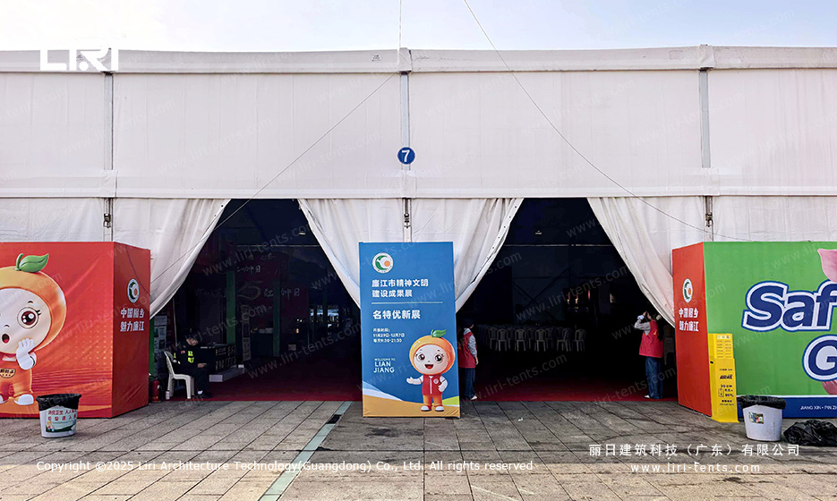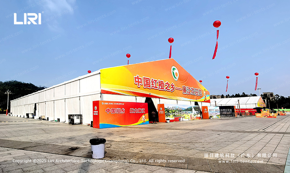 The objective was to transition from an empty lot to a fully operational hub, utilizing a high-performance exhibition tent for the main display areas while integrating specialized zones for security and catering.